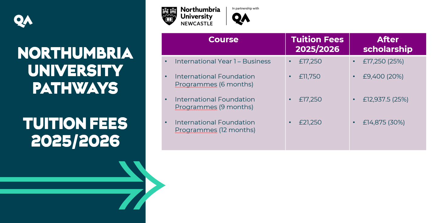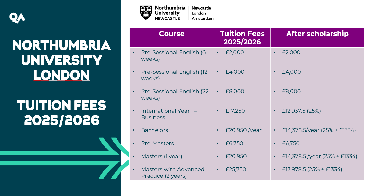- So sánh với năm 2024: Giá trị học bổng năm nay đã tăng lên đáng kể (từ 20% + £1,334), cho thấy sự ưu ái đặc biệt của Northumbria University dành cho sinh viên SEA.![]()