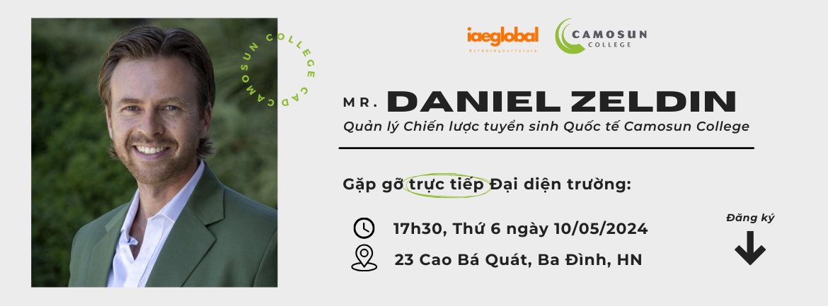 Ngày 10/5/2024 tới đây, Đại diện tuyển sinh của trường là Thầy Daniel Zeldin, Giám đốc Chiến lược tuyển sinh Quốc tế của trường sẽ có mặt tại iae GLOBAL Việt Nam.