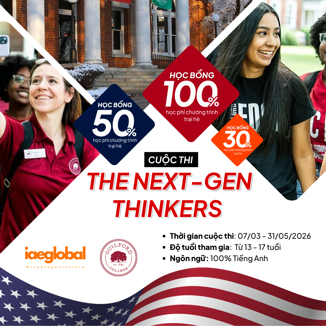 The Next-Gen Thinkers 2026 là cuộc thi học bổng do Global Academy at Guilford tổ chức nhằm tìm kiếm và trao cơ hội cho những học sinh Việt Nam có tư duy nổi bật, yêu thích học hỏi và mong muốn trải nghiệm mô hình Early College (Học vượt cấp) cùng triết lý Giáo dục Khai phóng (Liberal Arts) tại Guilford College (Mỹ).