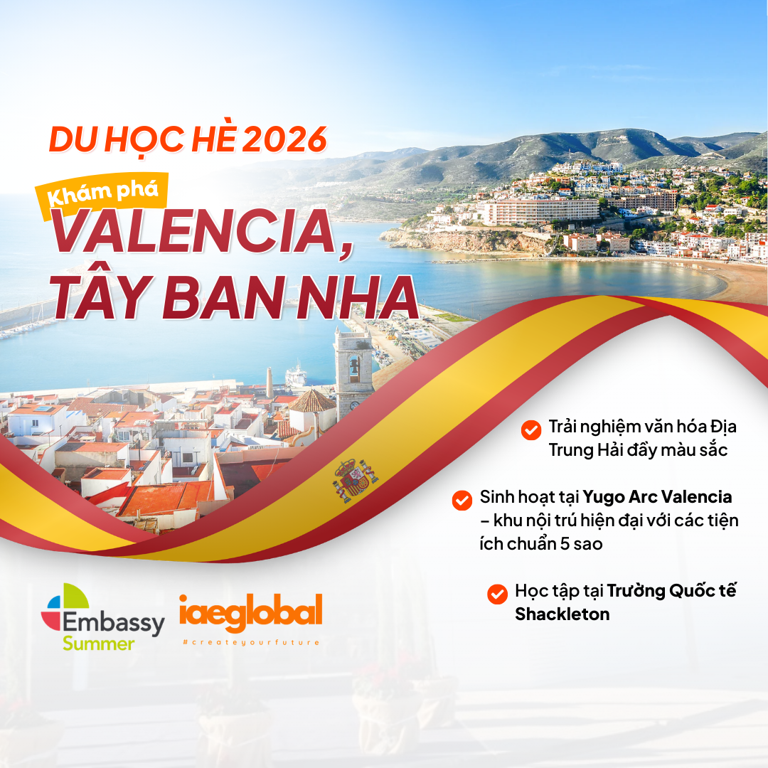 Valencia – thành phố cảng xinh đẹp của Tây Ban Nha, nơi giao thoa giữa kiến trúc tương lai và nét cổ kính lịch sử, chính là điểm đến mới nhất trong danh mục Embassy Summer 2026. Đây là cơ hội vàng để các bạn trẻ từ 11 đến 18 tuổi tận hưởng một mùa hè rực rỡ, nâng cao kỹ năng ngôn ngữ và phát triển tư duy toàn cầu.