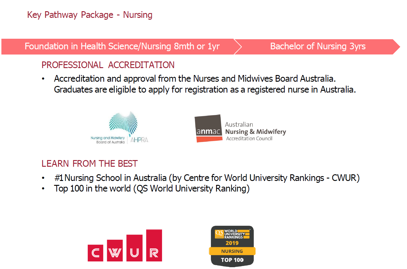 - Chương trình được công nhận và phê duyệt bởi Nurses and Midwives Board Australia.