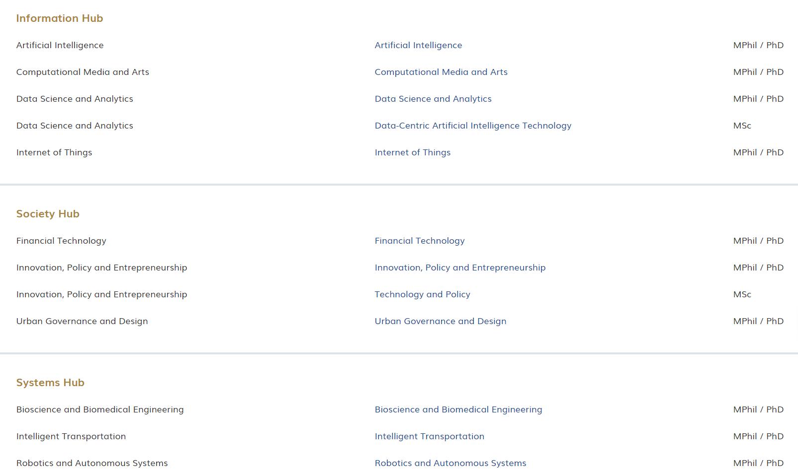 HKUST(GZ) cung cấp đa dạng chương trình đào tạo bậc cử nhân, thạc sĩ và tiến sĩ, tập trung vào các lĩnh vực khoa học, kỹ thuật và kinh doanh. Một số ngành học nổi bật tại HKUST(GZ) bao gồm: