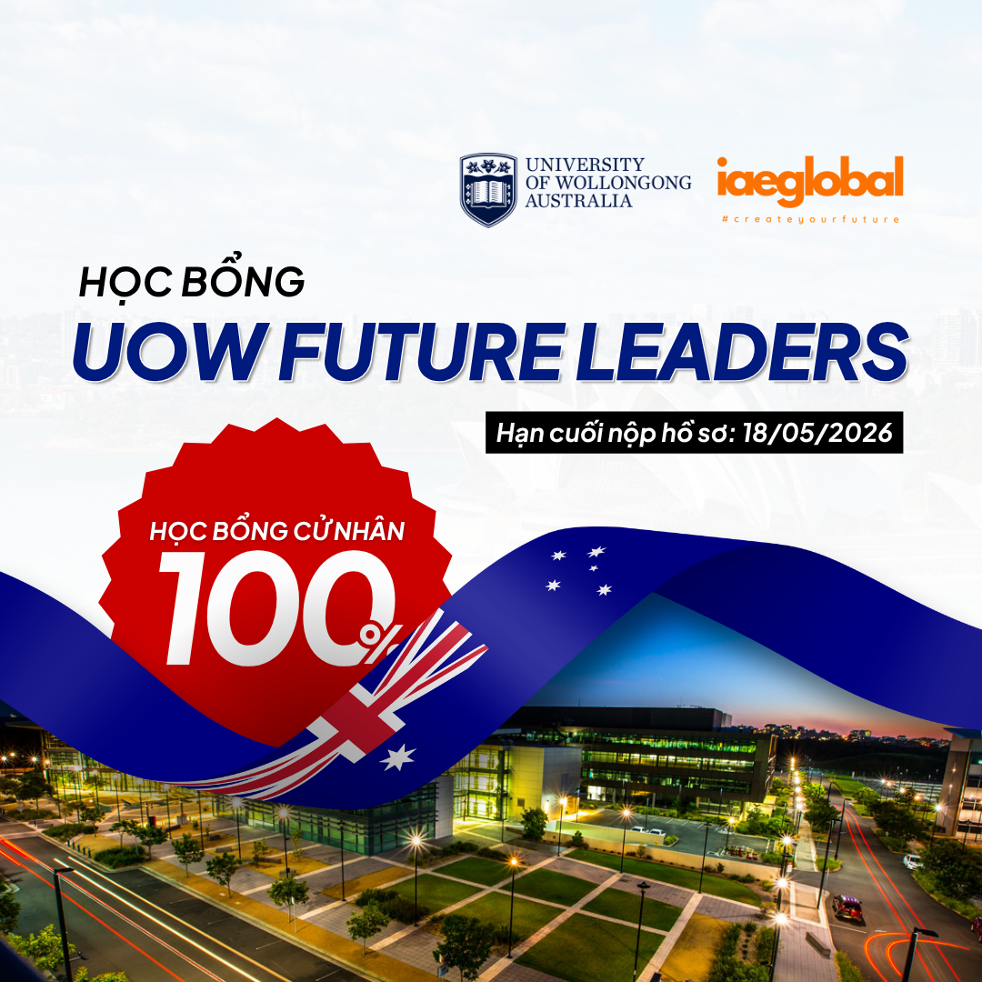 UOW Future Leaders Scholarship 2026 là học bổng danh giá nhất của University of Wollongong (Úc), hỗ trợ 100% học phí cho toàn bộ chương trình Cử nhân tối đa 4 năm. Đây là cơ hội vàng dành cho học sinh quốc tế xuất sắc đang hoàn thành lớp 12 trong năm 2026 để chinh phục giấc mơ du học tại một trong những đại học hàng đầu thế giới.