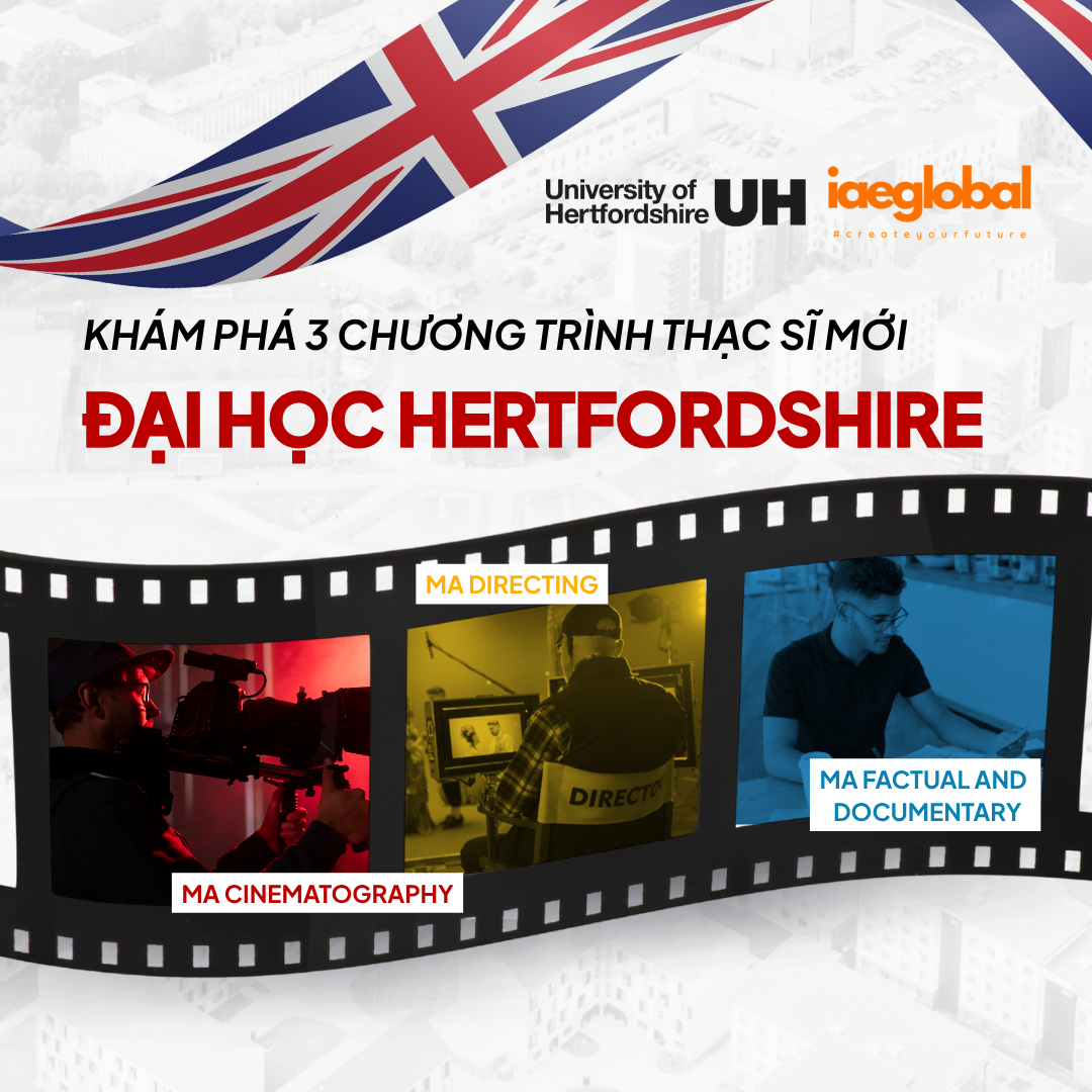 Bạn đam mê điện ảnh và khao khát trở thành nhà quay phim chuyên nghiệp, đạo diễn tài năng hay nhà làm phim tài liệu có tầm ảnh hưởng? Đại học Hertfordshire (University of Hertfordshire – UH) vừa chính thức mở cửa tuyển sinh quốc tế cho 3 chương trình Thạc sĩ (MA) chuyên sâu thuộc lĩnh vực phim ảnh. Đây là bước đệm hoàn hảo để bạn gia nhập ngành công nghiệp sáng tạo toàn cầu tại Anh Quốc.