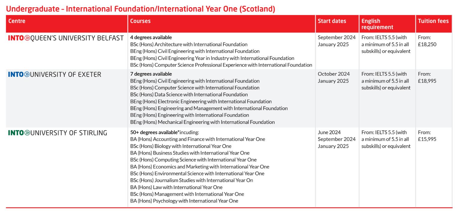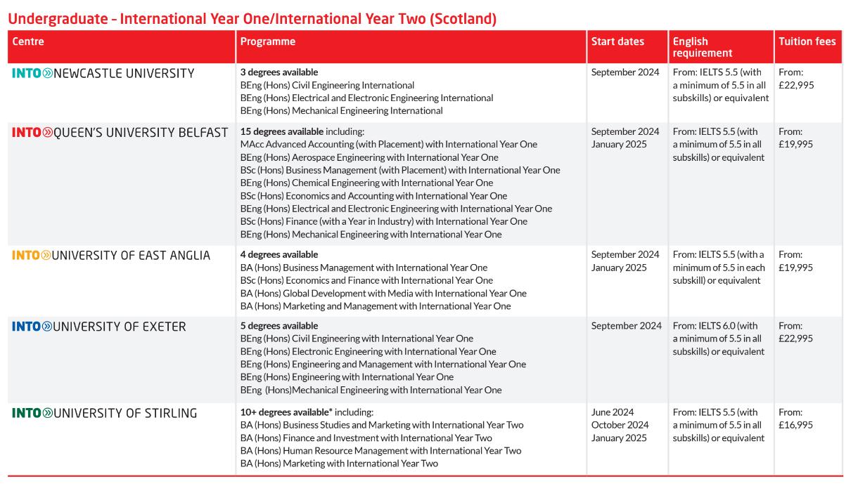 Dưới đây là danh sách những trường đại học có chương trình iCAS cùng INTO UK