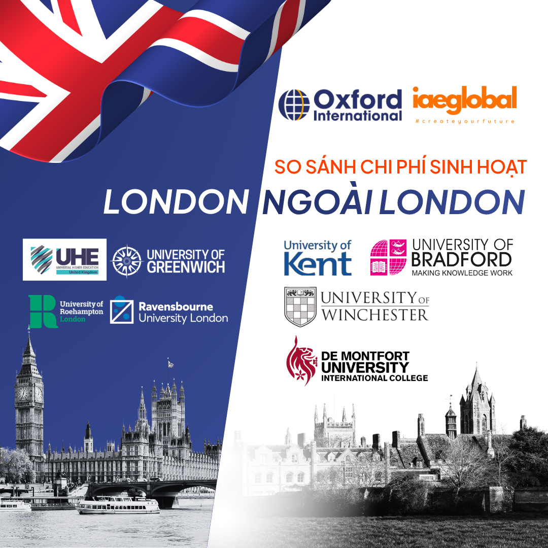 Năm 2026, chi phí sinh hoạt tại London dao động từ £975 đến £1,276/tháng, trong khi các khu vực ngoài London chỉ tốn khoảng £568 đến £800/tháng. Trong hệ thống 8 trường Oxford International, Đại học Bradford (UBIC) có mức phí rẻ nhất (£568/tháng), giúp sinh viên tiết kiệm hơn 50% chi phí so với các trường tại London như UHE hay Greenwich.