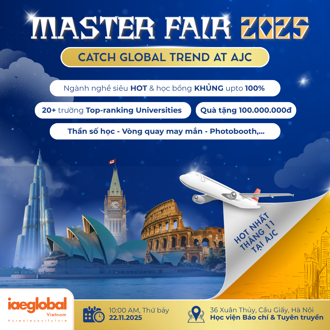 MASTER FAIR 2025 là bước khởi đầu vững chắc cho hành trình chinh phục ước mơ du học của sinh viên AJC. Đừng để cơ hội vươn ra thế giới trôi qua.