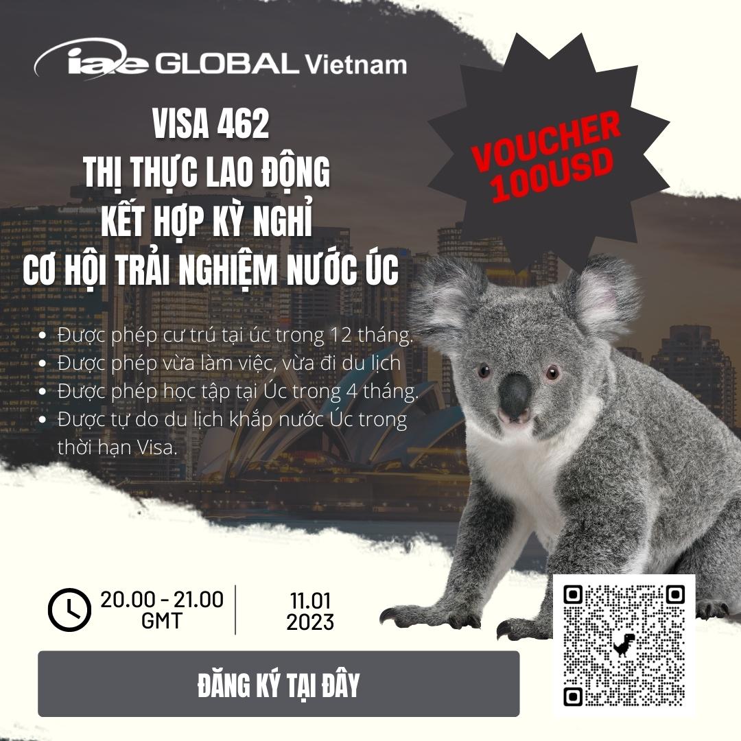 THAM GIA NGAY CÙNG Iae Global Hanoi ĐỂ NHẬN VOUCHER TRỊ GIÁ 100USD\ HỘI THẢO TRỰC TUYẾN: "Visa 462 - Thị thực lao động kết hợp kỳ nghỉ - cơ hội trải nghiệm nước Úc " Tự do làm việc và du lịch trong nước Úc Chỉ cần IELTS 4.5 Dễ dàng chuyển tiếp du học trong nước Úc với mức học phí dễ chịu Thời gian: 20h - 21h ngày 11/1/2023 100% cơ hội nhận Voucher 100 USD cho gói dịch vụ tư vấn visa du học/ du lịch ÚC ĐĂNG KÝ NGAY: https://forms.gle/hcNoBL4UnXCShLMMA --------------------------- Liên hệ với iae GLOBAL Vietnam để biết thêm chi tiết Hotline: 097 3919154 - 097 4122273 Email: tuvan@iaeglobal.vn