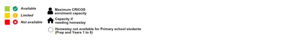 Thông tin này chỉ nhằm mục đích sử dụng như một hướng dẫn. Ưu đãi cho các trường hiện có tùy thuộc vào nhu cầu đăng ký của học sinh và mức độ phù hợp bao gồm: cấp lớp, thời gian học, sự kết hợp giữa các quốc tịch, chương trình chuyên biệt, các môn học thiết yếu cùng với ngôn ngữ, kết hợp ở nhà dân và các nhu cầu hỗ trợ về y tế cũng như khác.