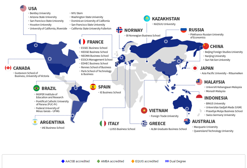 Với sứ mệnh thúc đẩy kiến thức kinh doanh trong môi trường học tập đa văn hóa, GSB của Đại học Sungkyunkwan dựa trên chương trình giảng dạy toàn cầu và đội ngũ sinh viên đa dạng để tạo ra môi trường học tập đa văn hóa. Trường đại học này cung cấp các cơ hội du học và ưu tiên phát triển sự nghiệp cho sinh viên MBA.