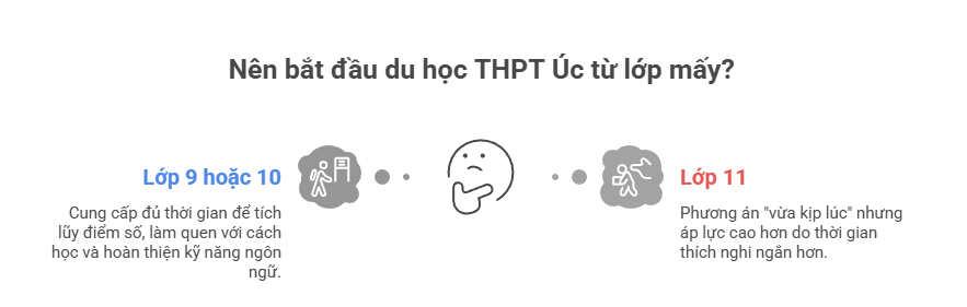 - Đi từ lớp 11: Đây là phương án "vừa kịp lúc". Các em sẽ bước thẳng vào chương trình tiền Đại học hoặc dự bị. Tuy nhiên, áp lực sẽ cao hơn vì thời gian thích nghi bị rút ngắn.