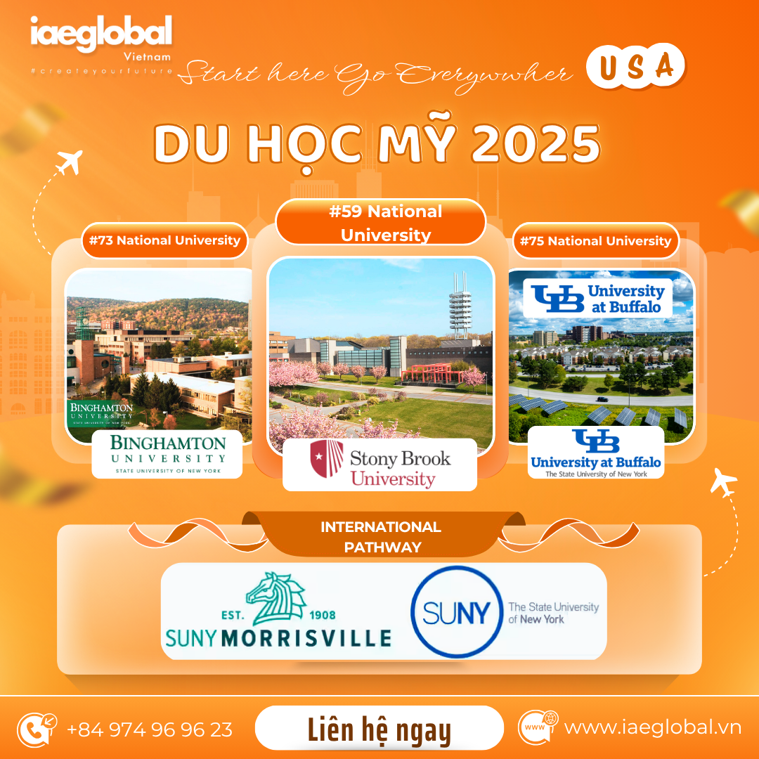 - Năm 2 - 4: Một trong các trường Đại học thuộc hệ thống SUNY (ví dụ: Binghamton University, University at Albany, University at Buffalo, Stony Brook University…)