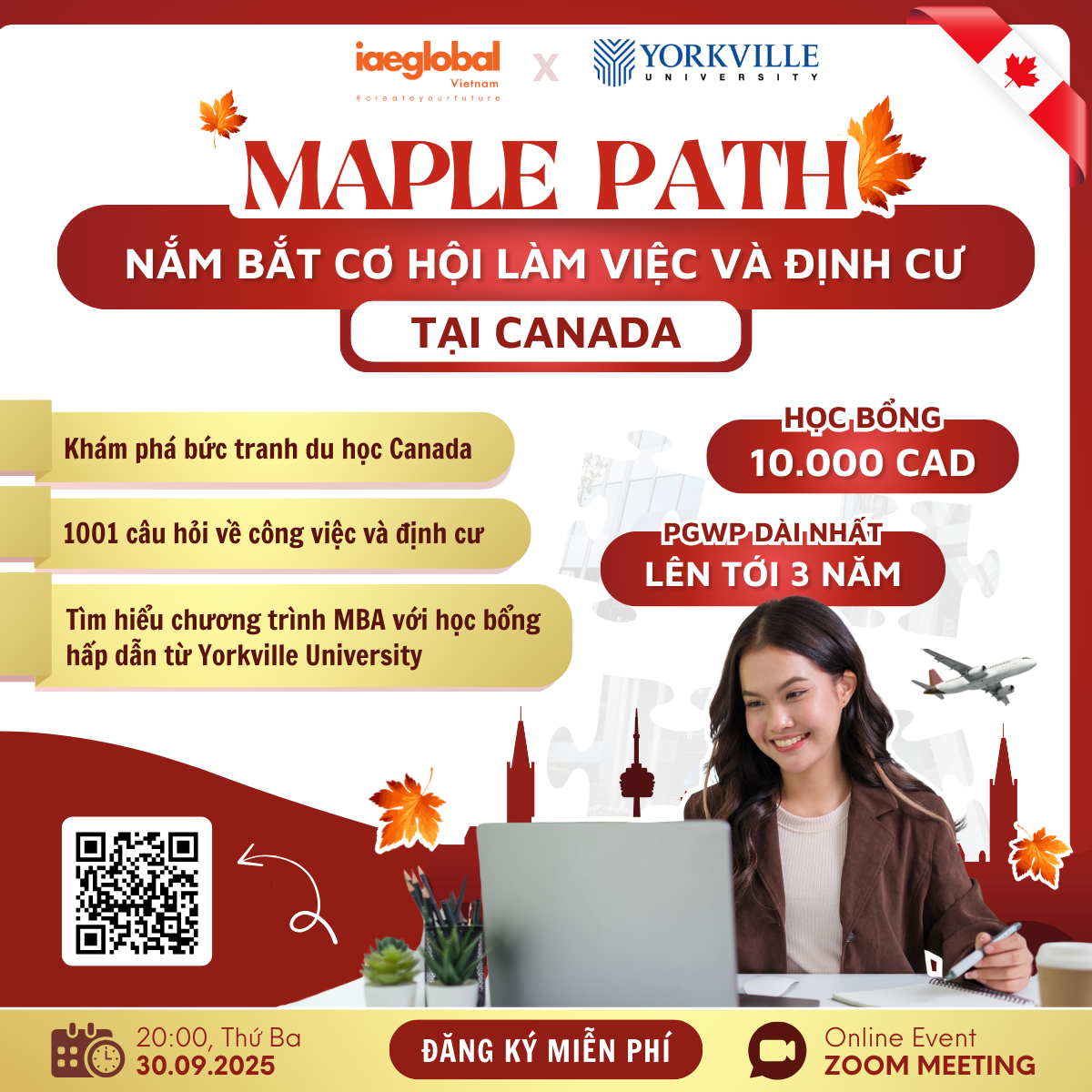 Và quan trọng nhất: Con đường nào giúp bạn vừa học tập, vừa mở rộng cơ hội ở lại làm việc và định cư tại Canada? Tất cả sẽ được giải đáp trong Webinar MAPLE PATH: