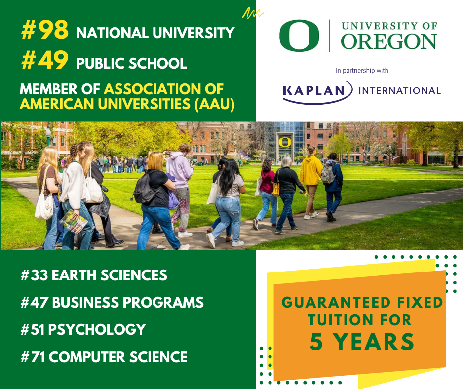 University of Oregon (UO) là một trong 50 trường đại học công lập đứng đầu tại Mỹ (theo Bảng xếp hạng U.S. News & World Report 2024) và là thành viên duy nhất đại diện cho toàn bang Oregon của Hiệp hội các Trường đại học Mỹ danh tiếng (AAU), với những thành tựu học thuật đáng tự hào.