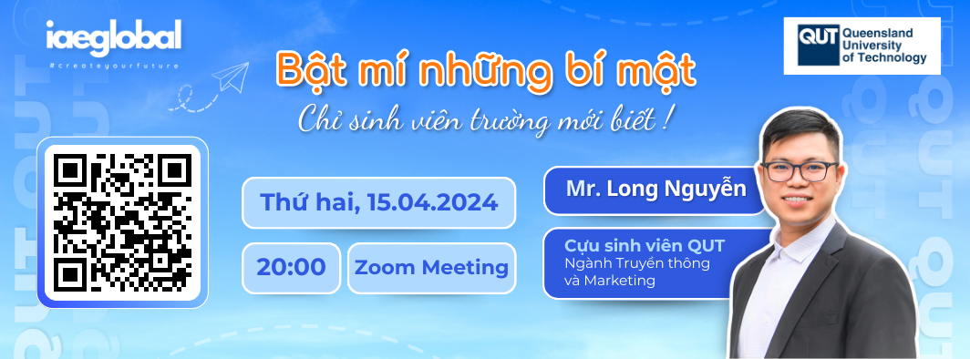 20h tối nay, hãy cùng iae gặp gỡ, giao lưu với niềm tự hào của QUT - Cựu sinh viên, Thạc sĩ Truyền thông Marketing - anh Long Nguyễn để hiểu thêm về ngôi trường và những ngành học xịn xò này nhéee
